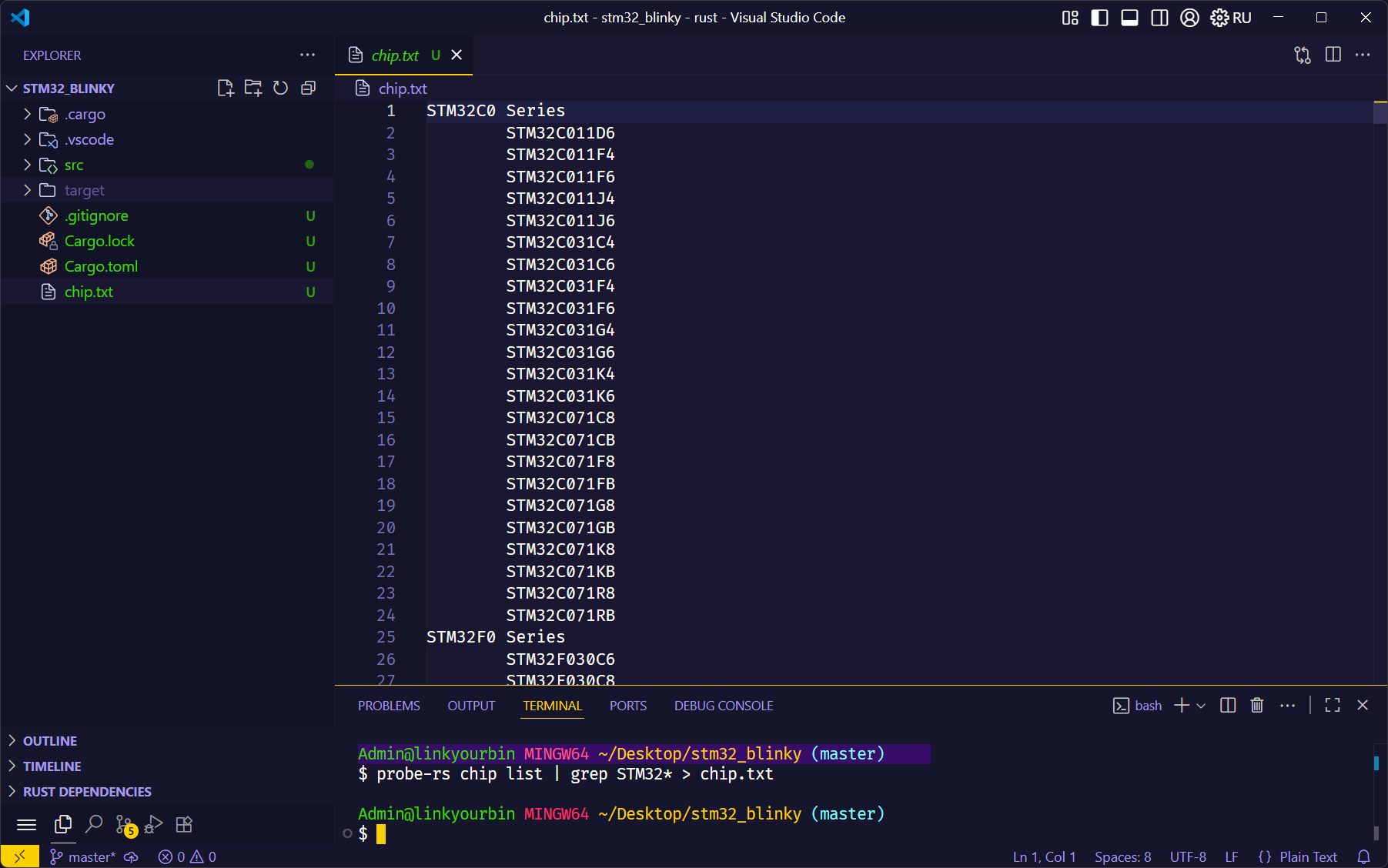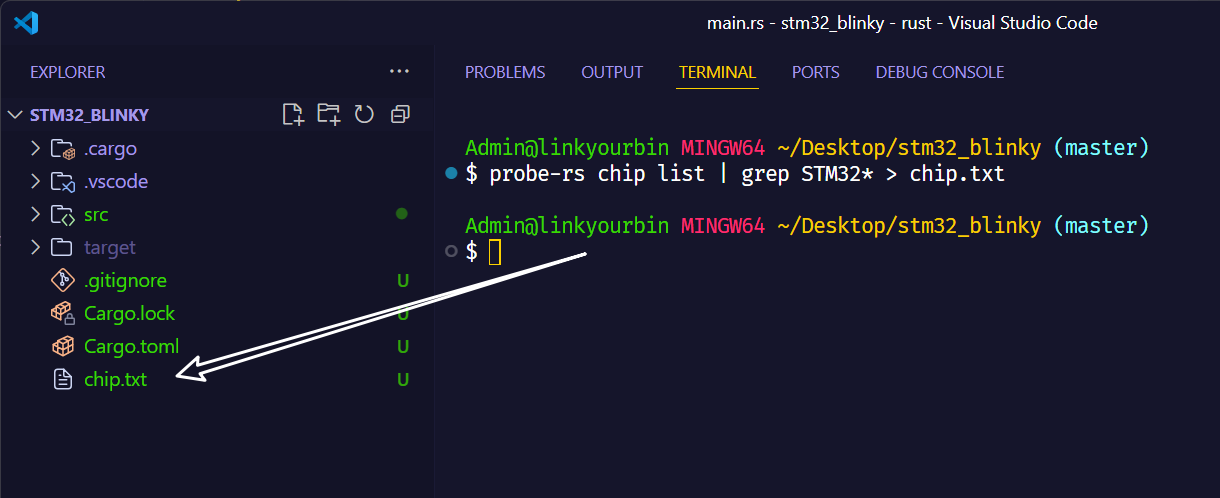 probe-rs chip list | grep STM32* > chip.txt