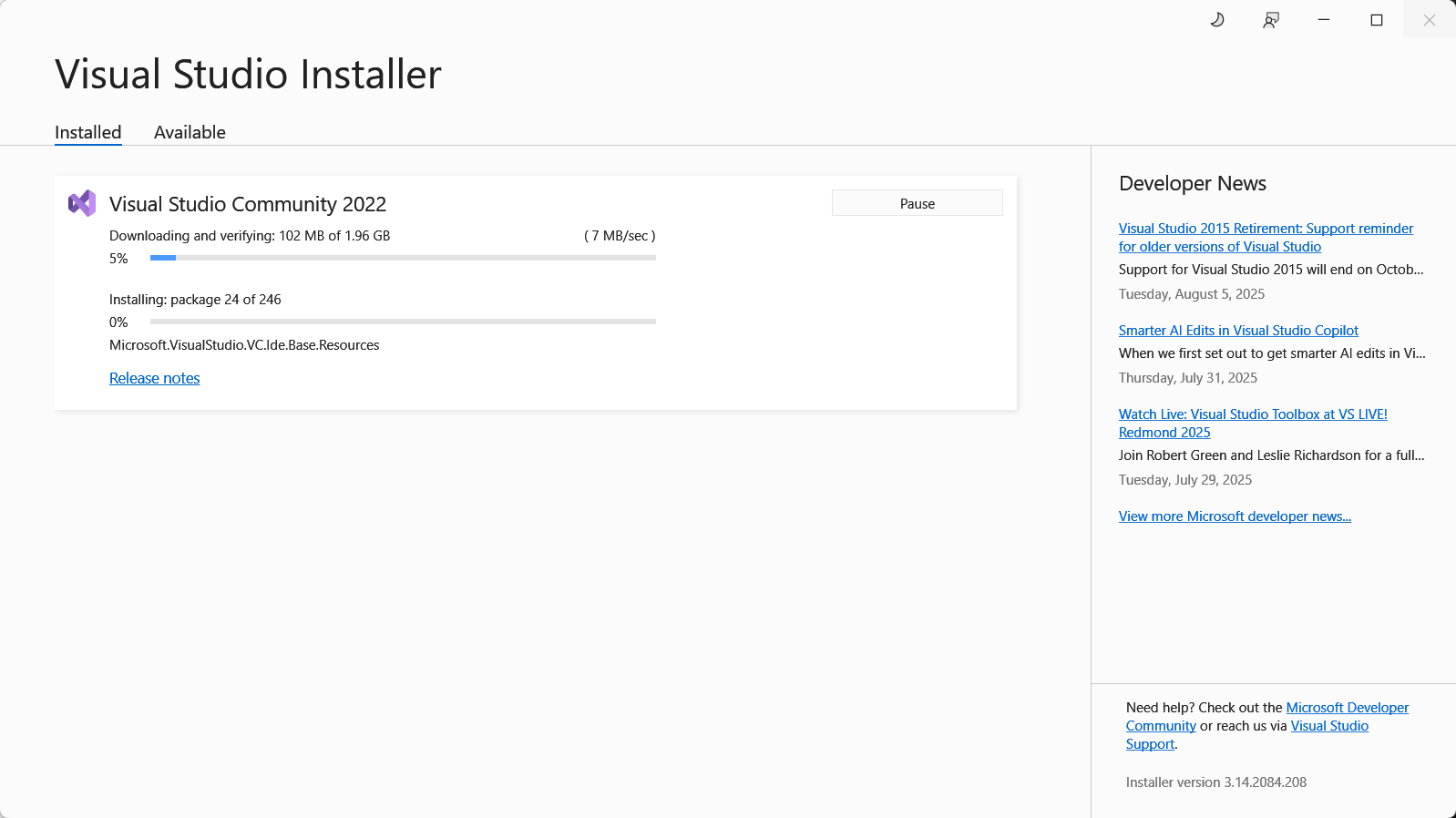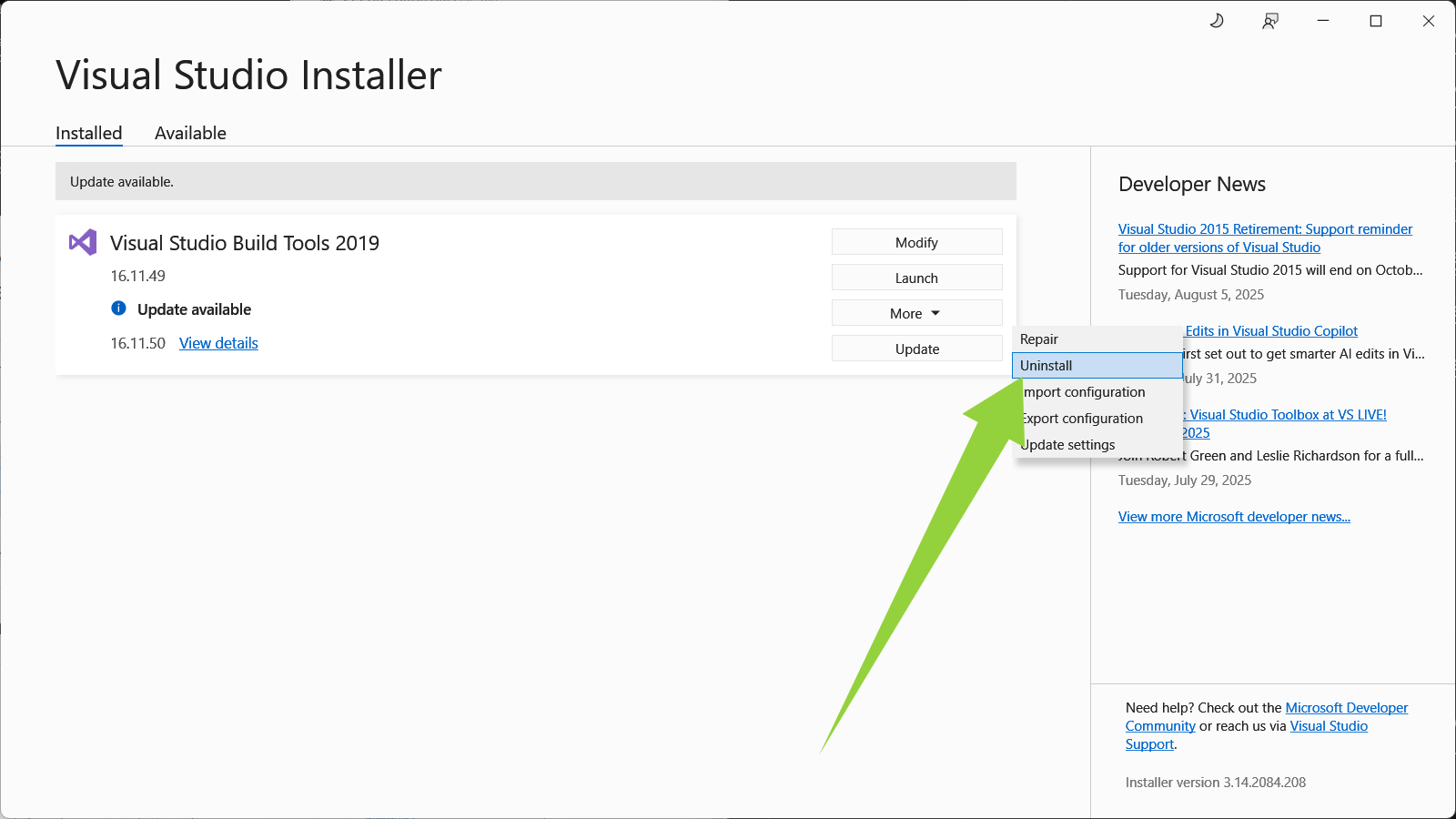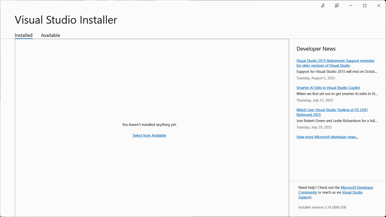 Visual Studio Installer,安装一些必备组件,之后编译项目或者工具的时候需要用到,点击Modify