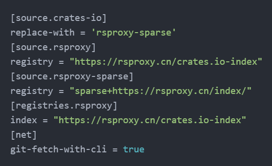 Rust,并且只是用标准库(无法做嵌入式开发),则完成以上步骤即可,但Rust嵌入式会频繁使用到crates.io的一些crate(理解成其他语言的库/模块),所以还需要配置拉取rsproxy提供的镜像(一分钟更新一次,可以近似理解为不会过时),具体操作步骤如下- 按下
