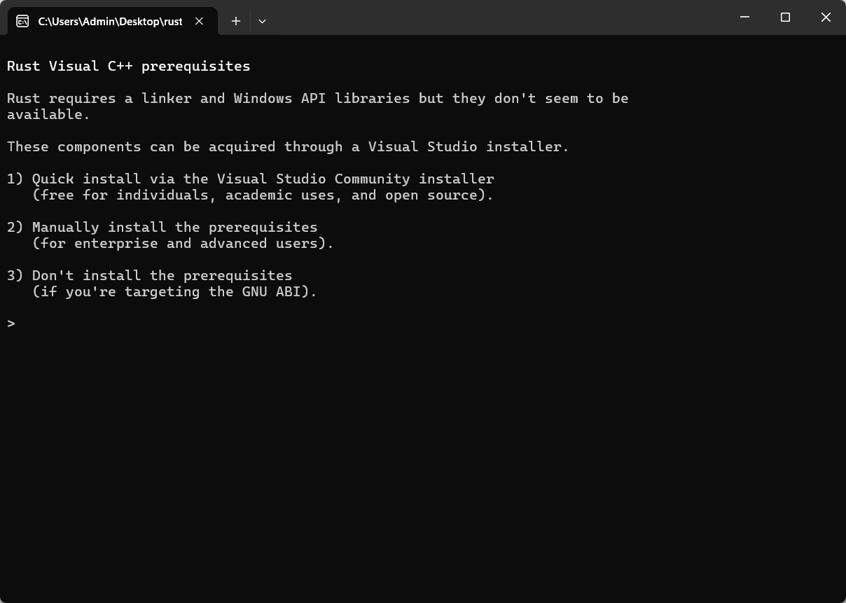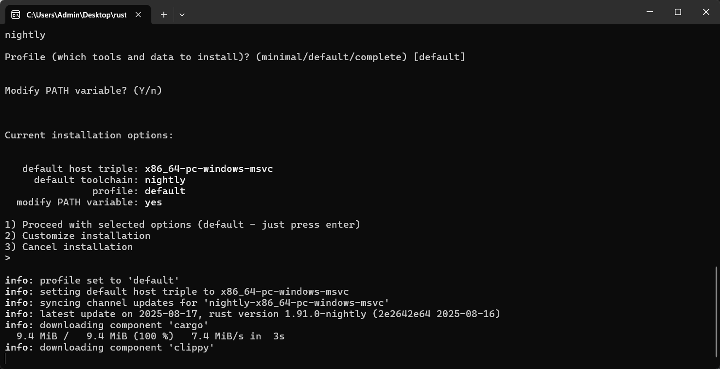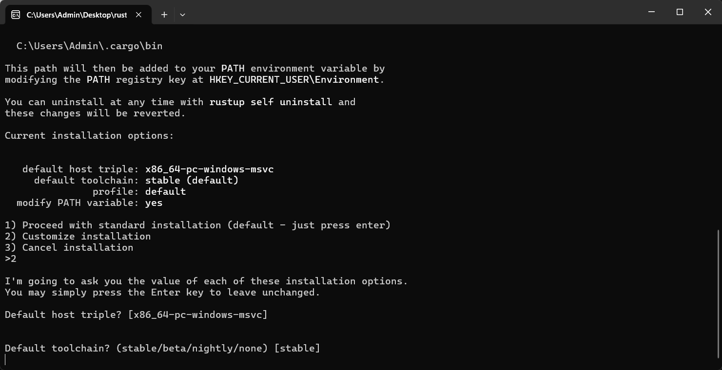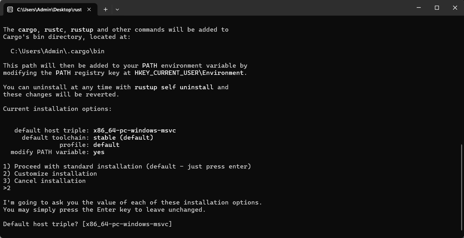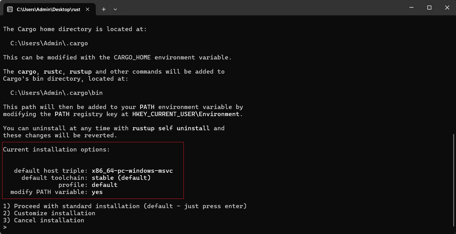 Rust Installer会继续引导我们完成接下来的步骤- 可以看到,已经识别到了