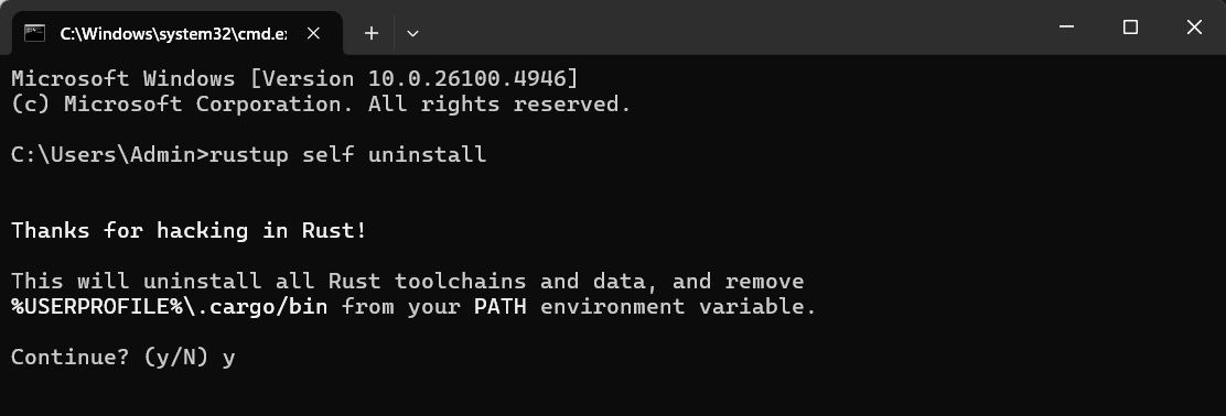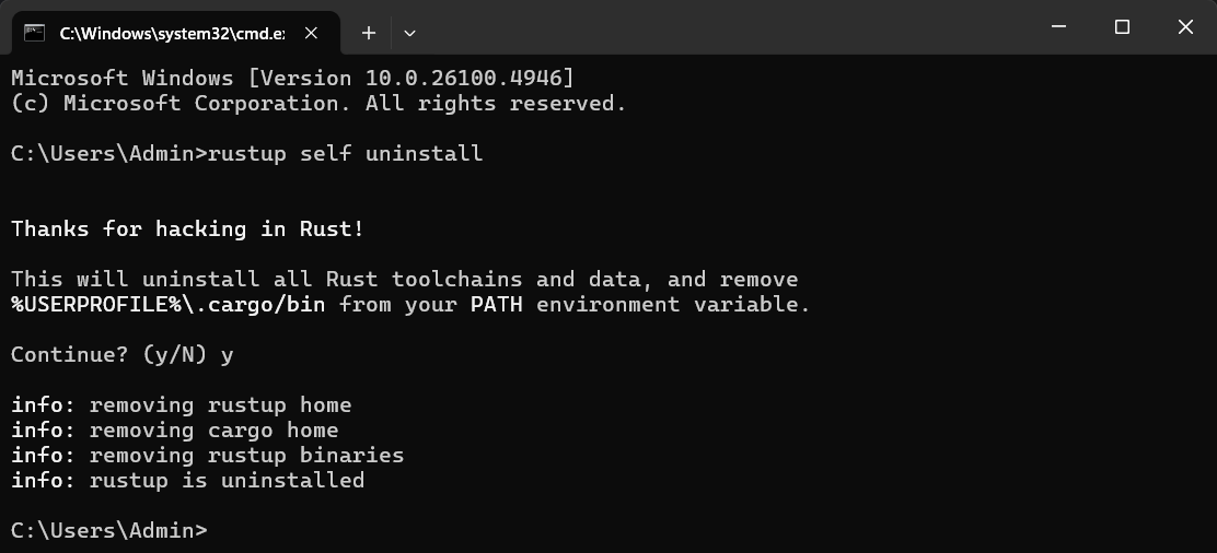 Rust本身就是一门反复入门,不断卸载重装的语言,若是学习过程让你感觉到吃力,不舒服,你想继续回归C/C++嵌入式,请按照以下步骤完成卸载。